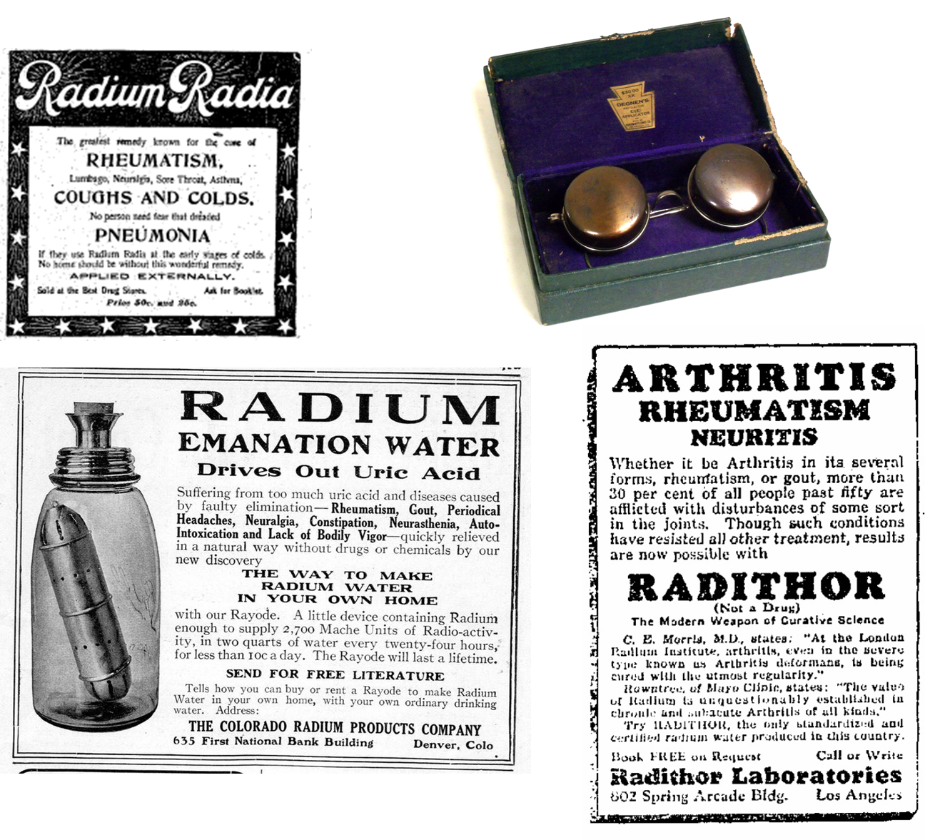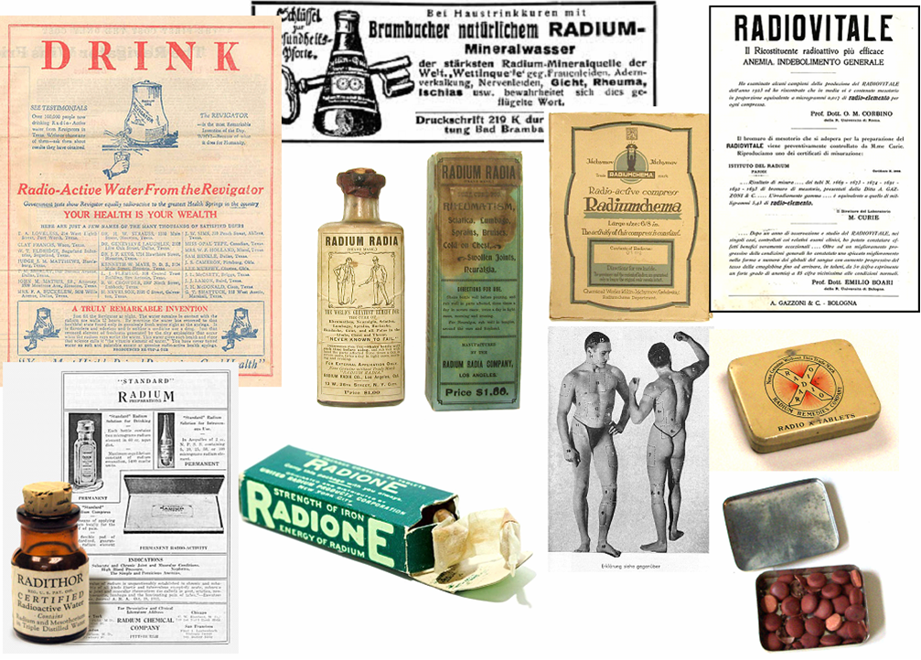 Pero si hubo un campo donde el Radium, y cualquier otra forma de radiactividad, fueron considerados como la panacea, como el remedio natural a todos los males que afligían al hombre moderno de la época, fue en el ámbito de la salud. “Aquí está la Salud” como rezaba la publicidad de entonces: