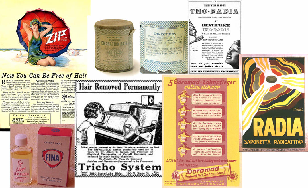 Pero no sólo eso, también los productos empleados en la higiene personal se potenciaban con elementos radiactivos: jabones, dentífricos,… Además, y esto sin duda alguna que lo conseguía, el radium era la oportunidad de conseguir una depilación permanente que acentuara su belleza…: