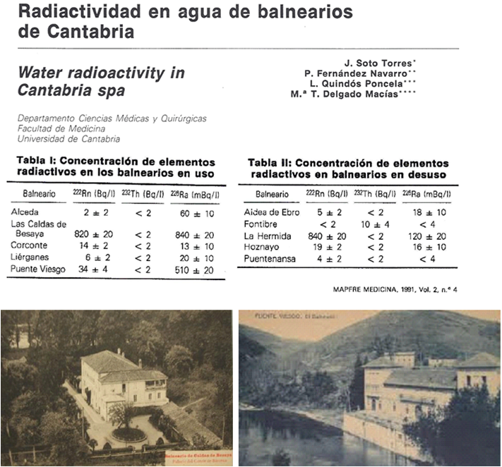 Ante el interés que suscitó el descubrimiento de la radiactividad del radio y de otros elementos radiactivos, no es de extrañar que muchos científicos buscaran demostrar la existencia de radiactividad natural en el ambiente. En 1903 Nature publicó una carta de J. J. Thompson, conocido por ser el descubridor del electrón. Thompson escribió que había encontró radiactividad en el agua de un manantial. A partir de este momento se sucedieron las demostraciones de que las aguas de muchos de los balnearios de salud más famosos del mundo eran también radiactivas. Esta radiactividad se atribuyó inicialmente a «las emanaciones de radio” (radón) producidas por el fluir del agua a través del mineral de radio presente en las rocas del suelo que conformaban el lecho geológico de muchos de los más afamados balnearios y manantiales del Viejo Mundo.