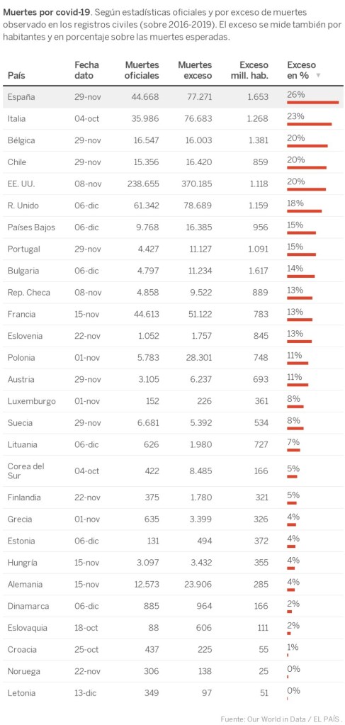 Para no olvidar que España ostenta el triste hito de ser el país con más exceso de muertes por habitantes de toda la Unión Europea. ¿Razones?, muchas. Principalmente, la nefasta gestión llevada a cabo por todos aquellos que se supone deben encargarse de dirigir los destinos del país. Y a todos los niveles sin excepción. Pedro tampoco conviene olvidar que nuestra escoria política no es sino un reflejo, más o menos distorsionado, de la realidad de la sociedad española. Conviene no olvidarlo tampoco…